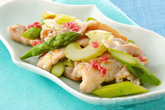 豚肉・セロリ・グリーンアスパラの梅炒め